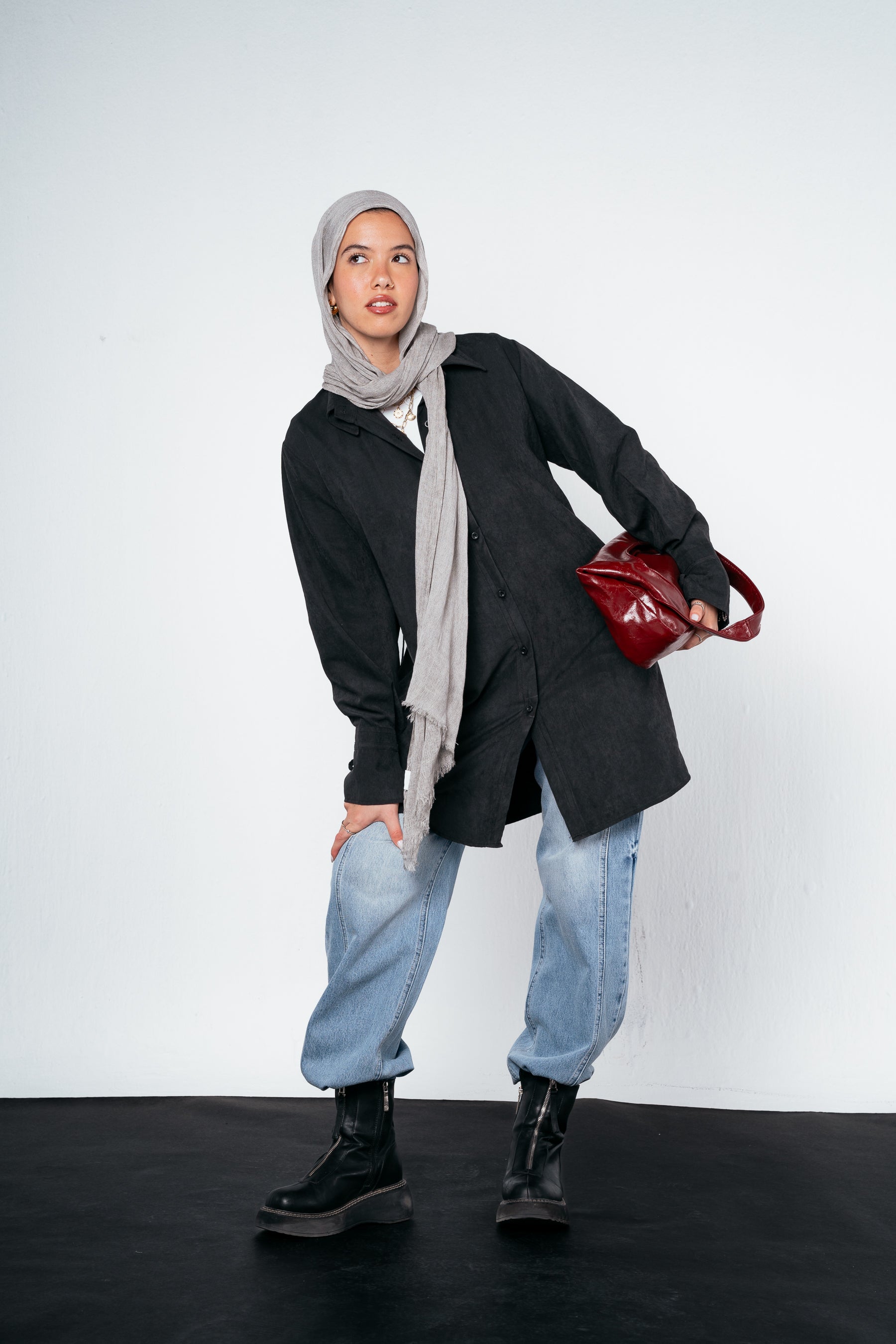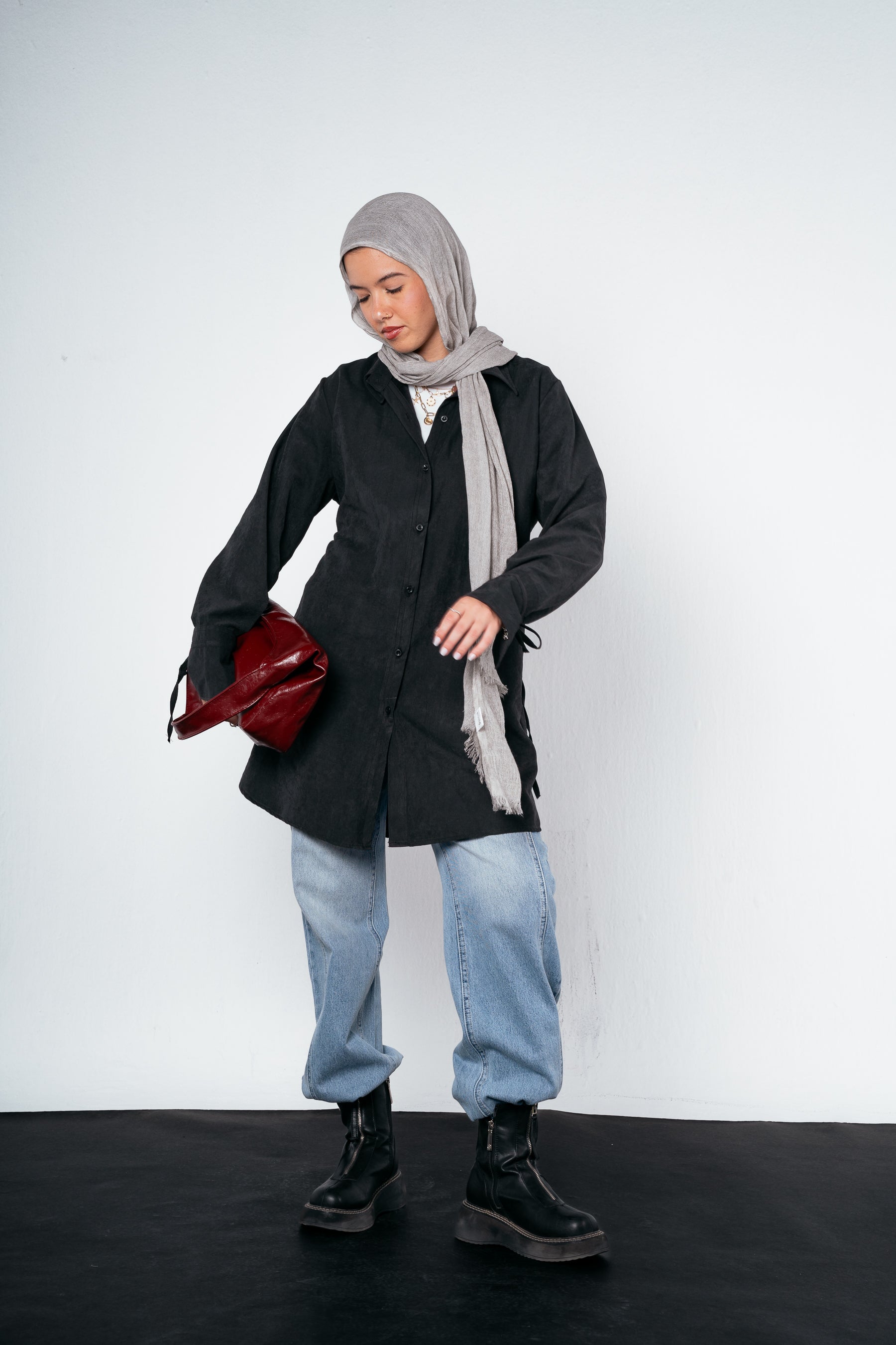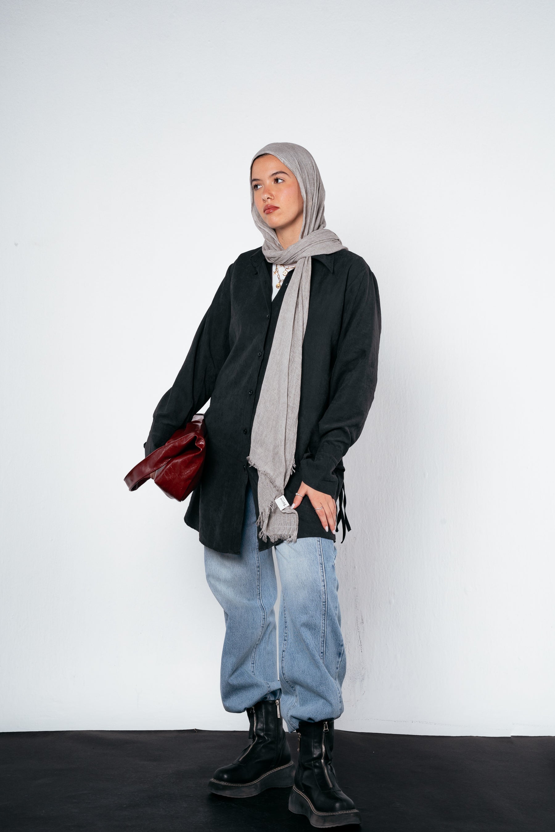 Meet your new statement shirt for fall — light, fluid, and full of character. Designed with an eye-catching sleeve cut and finished with triple drawstrings at the back, it blends comfort and creativity in one chic silhouette. Perfect for layering or standing out on its own.